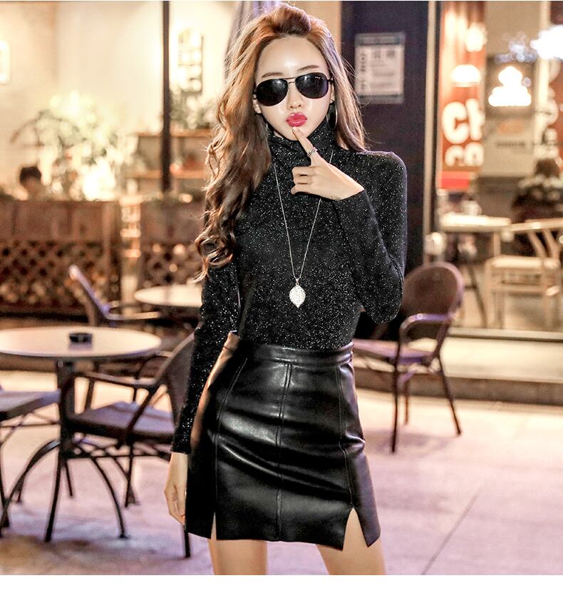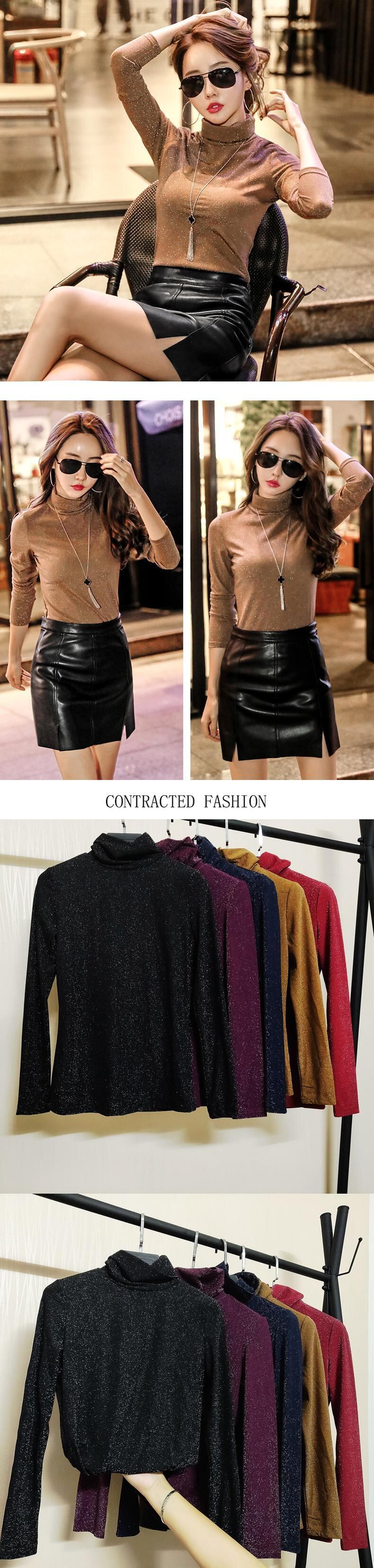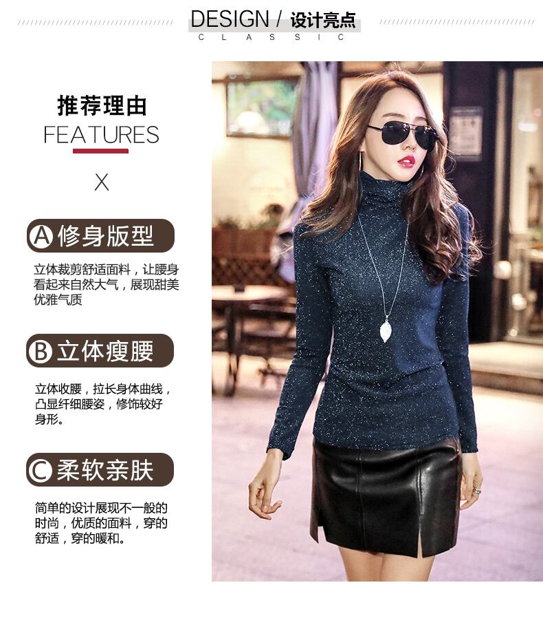 ルレックスハイネックボトミングシャツレディースバージョンの秋冬プラスベルベットスリムブライトシルクTシャツメッシュトップレースシャツタイド qmn43365592547