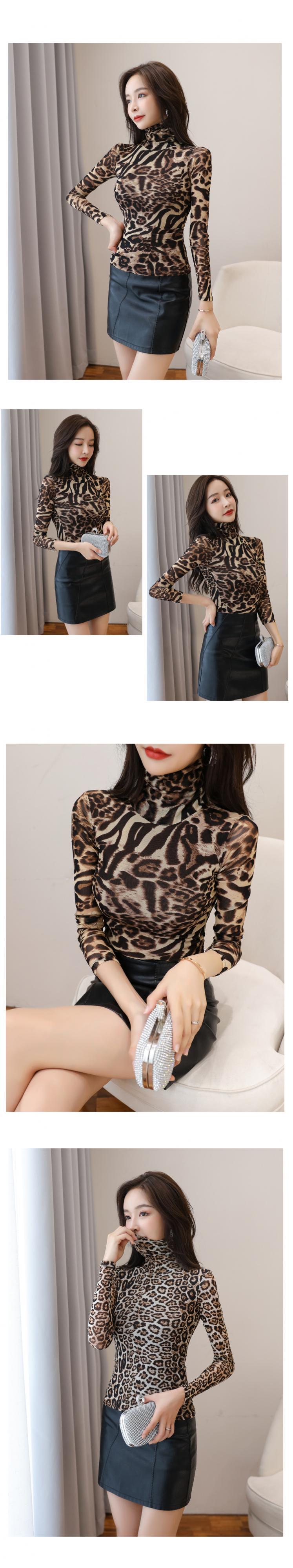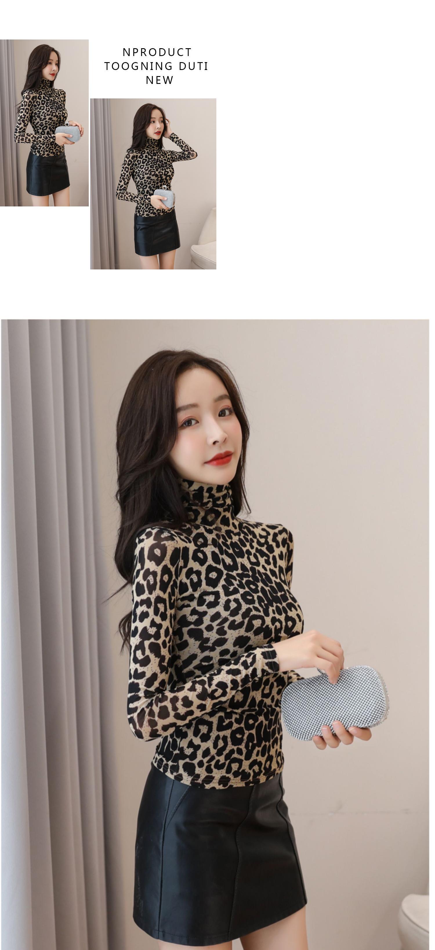 ヒョウ柄のボトミングシャツ女性の長袖2020年秋冬プラスベルベットの厚いメッシュトップ暖かいハイネックスリムプリントTシャツ qmn84304635866