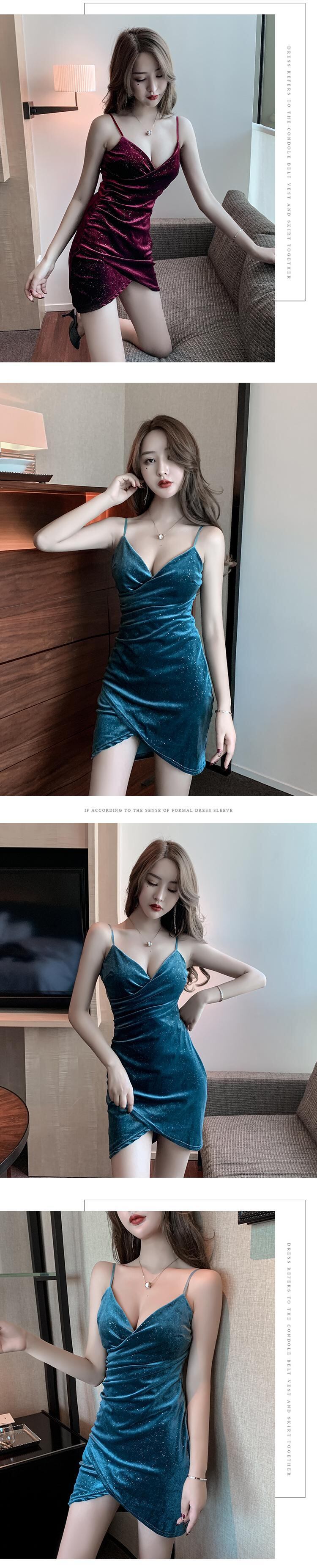 ナイトクラブの女性の夜の作業服光沢のあるセクシーなローカットディープVネックゴールドベルベットサスペンダードレス micat19395100909