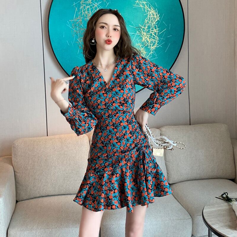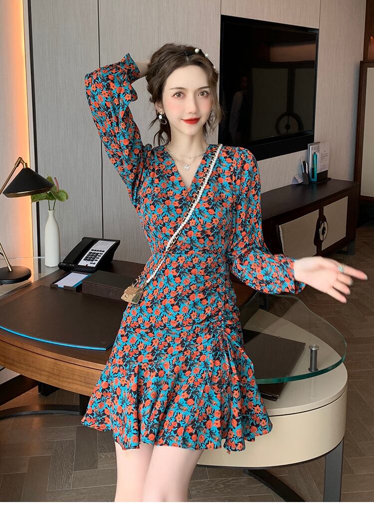 2021年秋新しい女性ネットレッドフレンチレトロフローラル成熟したロイヤルシスターウィンドウエストと薄いフィッシュテールドレス micat23263635484