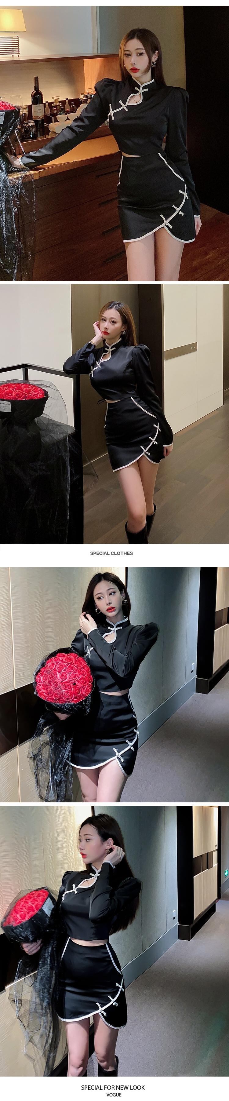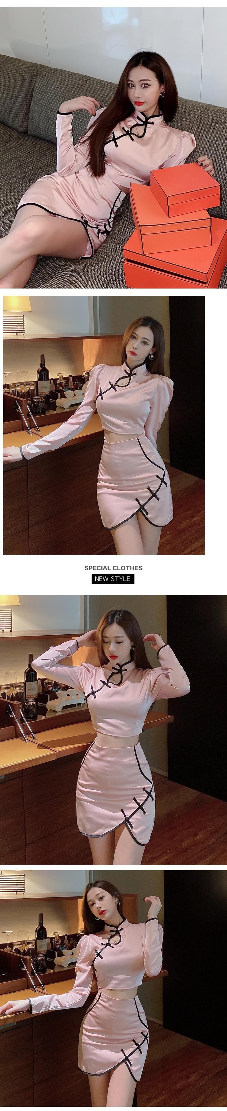 初秋のスーツ女性ネット赤中国風若いチャイナドレスセクシーショートトップショートスカートツーピーススーツ micat71055549009