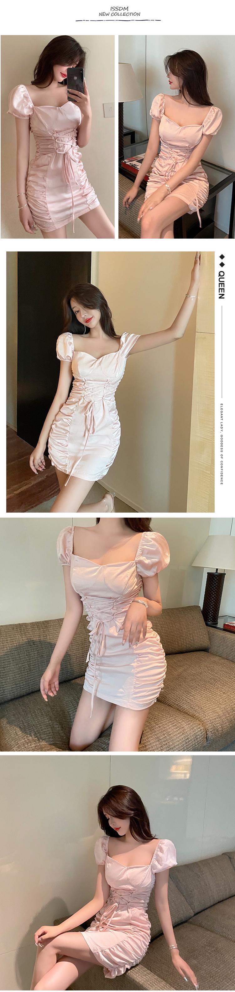 夏の気質レディースドレス気質セクシーフレンチパフスリーブレースアップウエストは細めのショートヒップスカート micat8573875643
