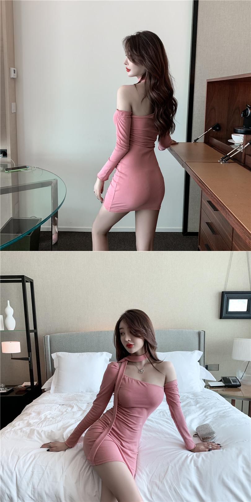初秋の服2021新しい女性のインターネット有名人アンカーセクシーな傾斜した襟ワンショルダーストラップレススリムフィットバッグヒップハンギングネックドレス micat30864189118