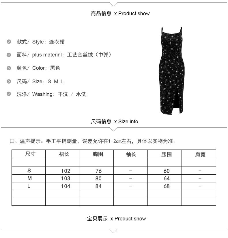 黒のイブニングドレスナイトクラブ女性の夜の宴会気質セクシーなゴールドベルベットミドル丈サスペンダードレス micat32267244271