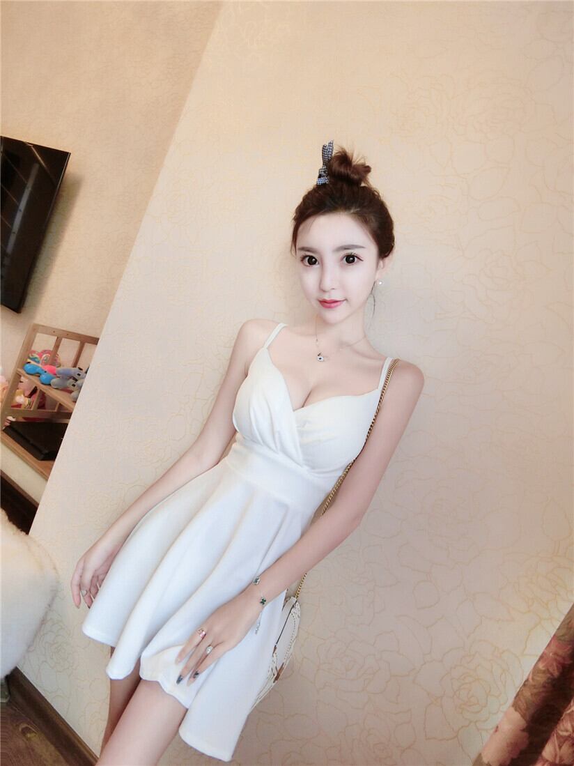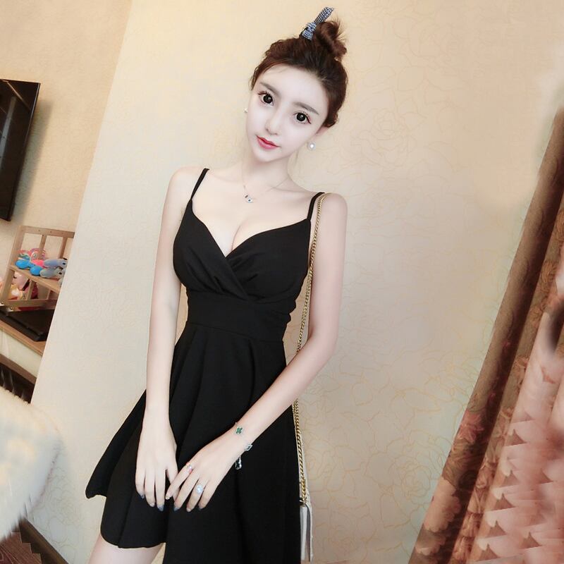 ナイトクラブバーレディース気質スモールドレススカート夏セクシーローカットVネック細いチューブトップストラップドレス micat83287327964