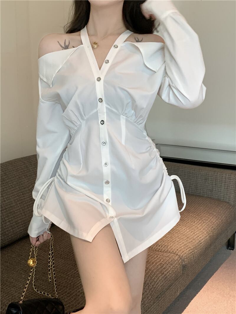 初秋の服2021新しい女性のシックなデザインセンスニッチシャツスカートセクシーなストラップレスホルターネックドレス micat84585291165