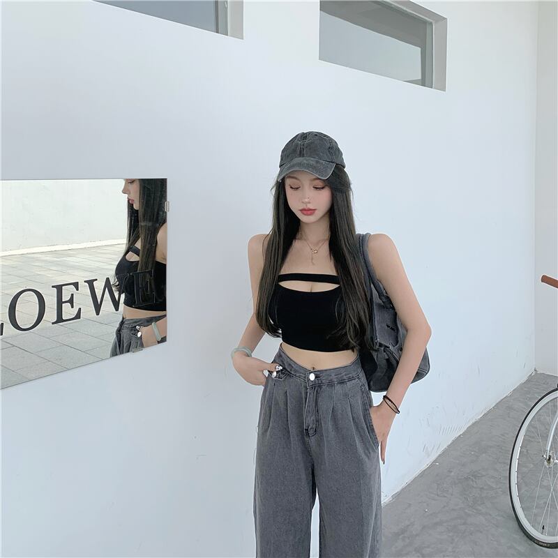 ライブ服ネットセレブ女性アンカー超セクシーな胸をくり抜いた胸スポーツタイトショートチューブトップベストトップ micat92199134830