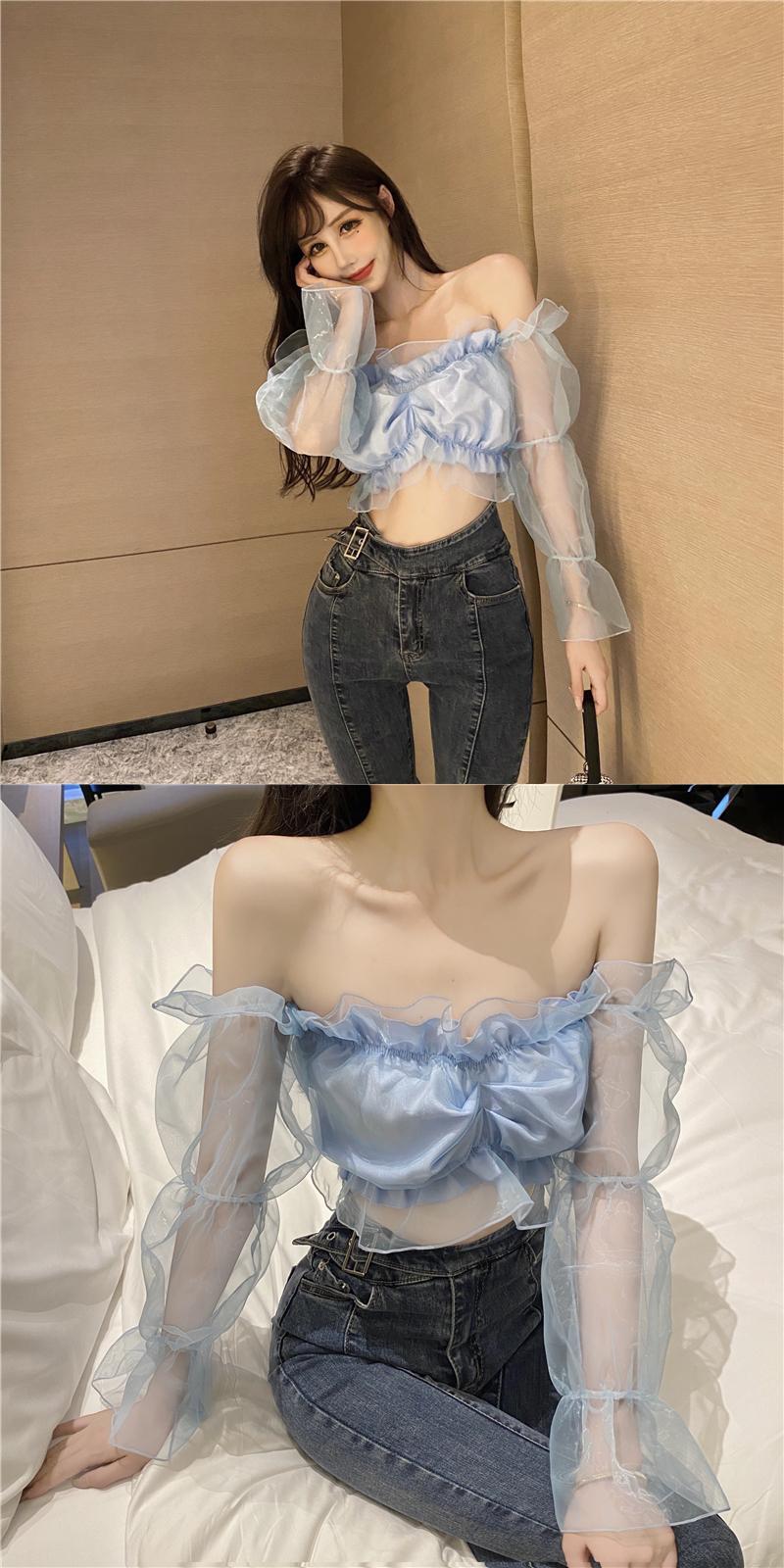 ライブ服アンカー服初秋の新しい女性フランスのスーパーフェアリーネット糸甘くてセクシーなショートショルダートップ micat64039906754