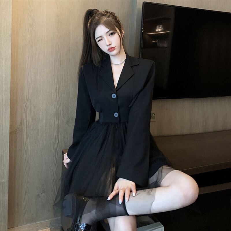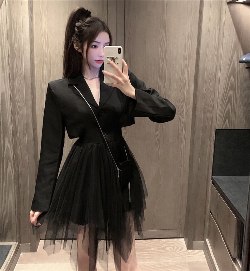 -首のファン成熟した姉スタイルの女性の秋フランスのスーパーフェアリーネットガーゼチュチュスカートスーツ襟スーツドレス micat80627568422