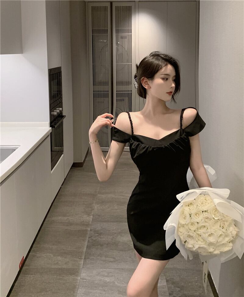 イブニングバンケット気質ブラックリトルドレスショートイブニングセクシーワンショルダースリムフィットバッグヒップストラップレススリングドレス micat95974817850