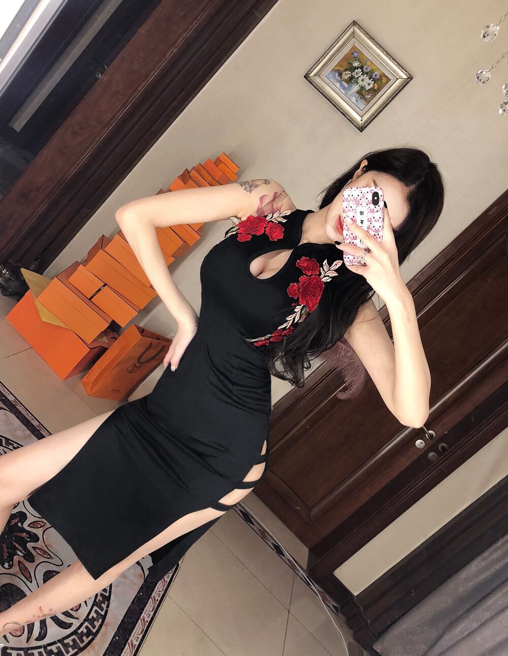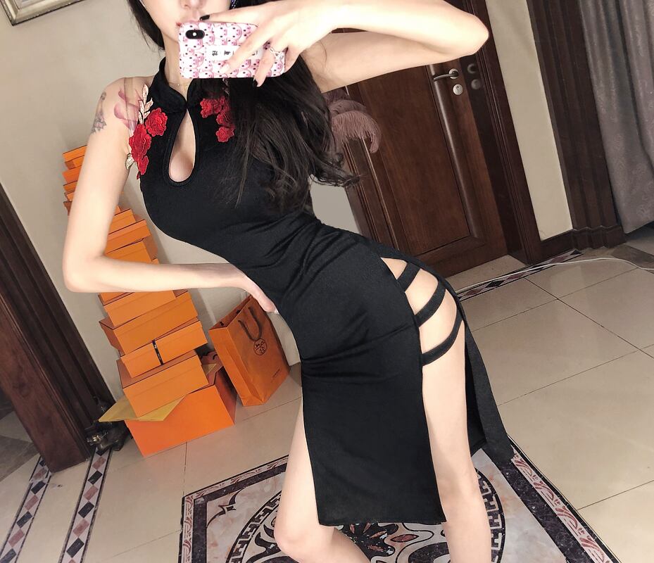 イブニングドレスナイトクラブとイブニングドレスチャイナスタイルのセクシーなハイスリットノースリーブミドル丈チャイナドレス改良版ドレス micat24153464199
