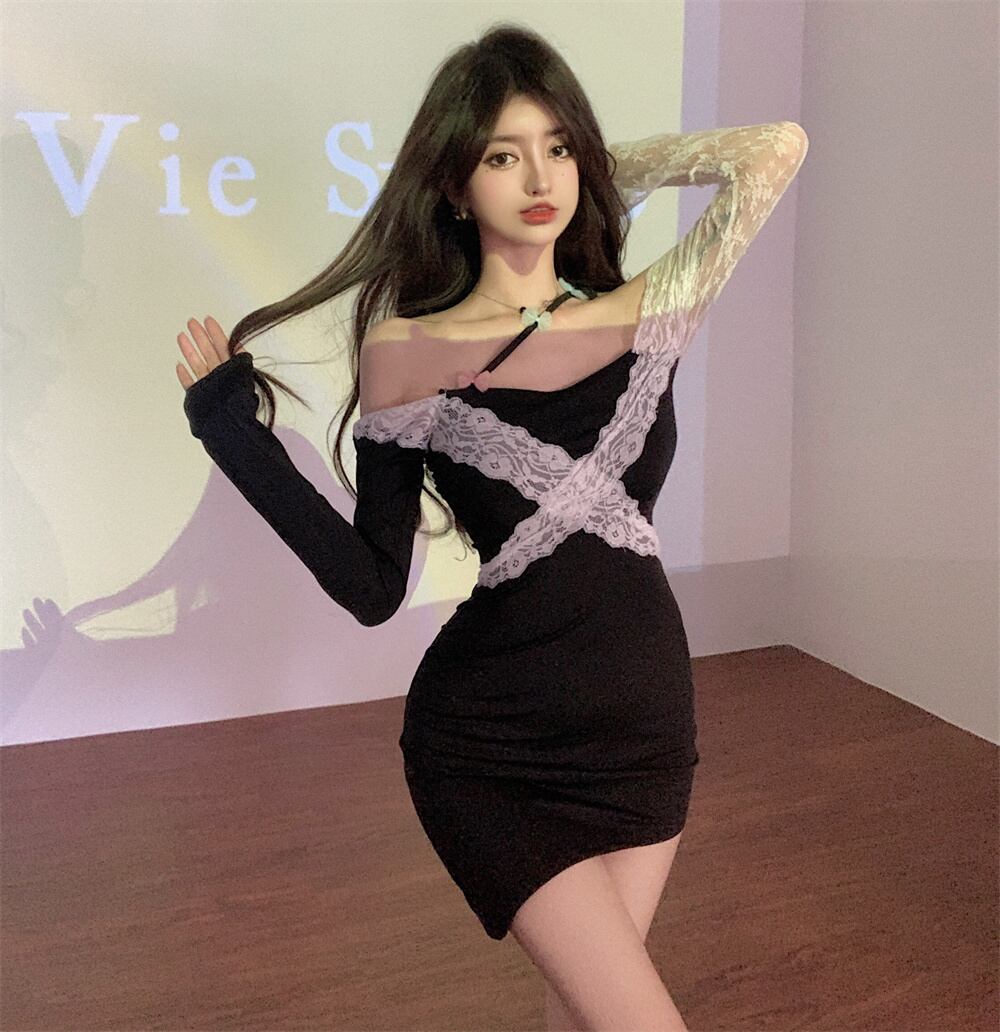 ナイトクラブレディースナイトフレンチミニドレスショートセクシーレースステッチワンショルダースラントネックスリングドレス micat2006444190