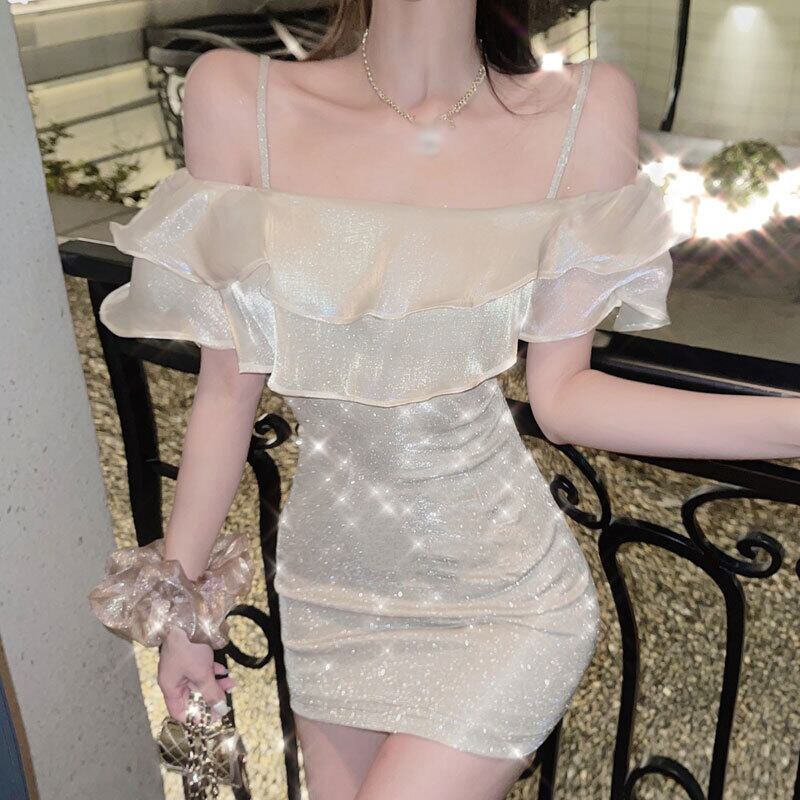 宴会気質ミニドレスショートスパークリングシャイニーシルクナイトクラブレディースセクシーワンショルダースーパーフェアリーサスペンダードレス micat10458564757