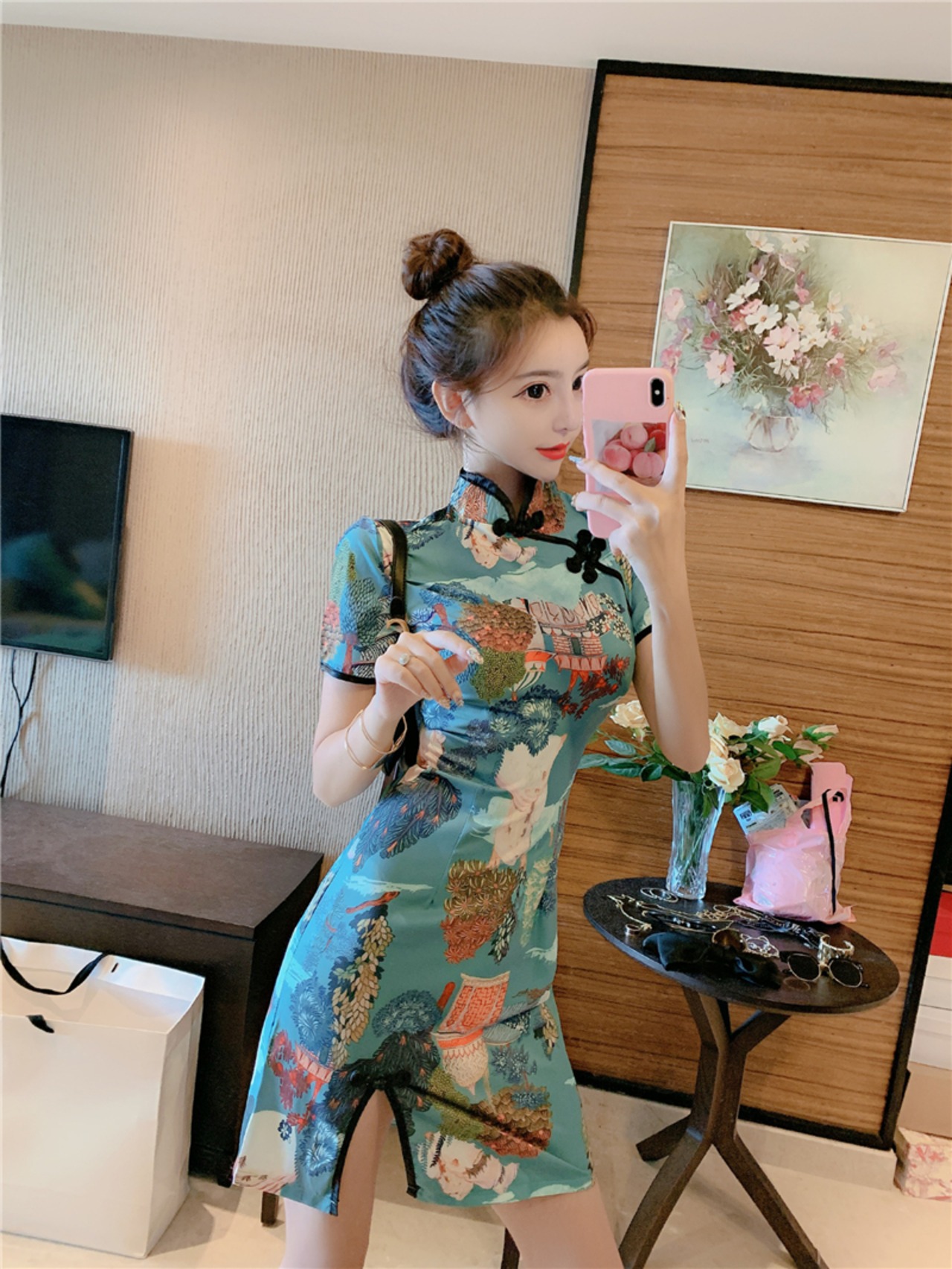 チャイナドレス改善2021年夏新しいスタイルの若いレトロなプリント毎日セクシーなスリムフィットヒップドレス micat61387323958