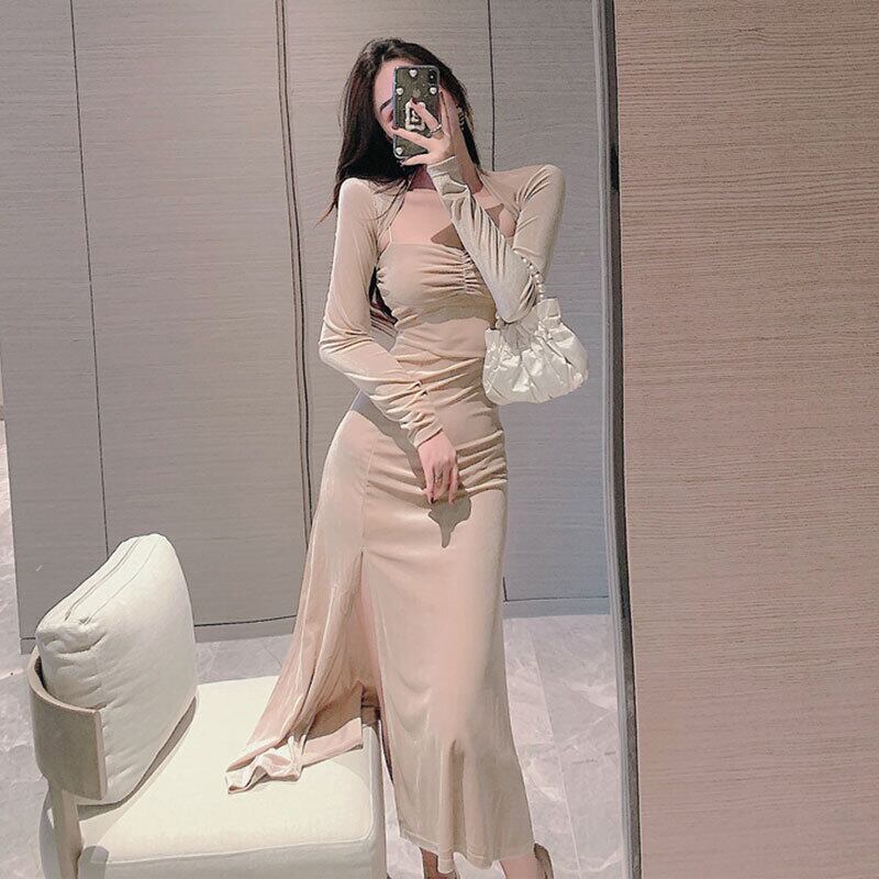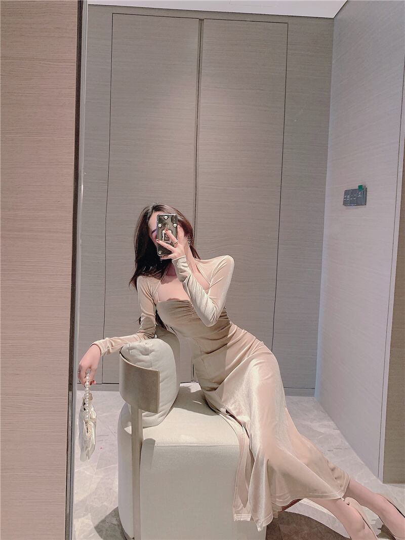 ロイヤルシスターイブニングドレススーツ気質揚げストリートバーゴールドベルベットチョッキ+セクシーサスペンダーロングスカートツーピーススーツ micat64713108389