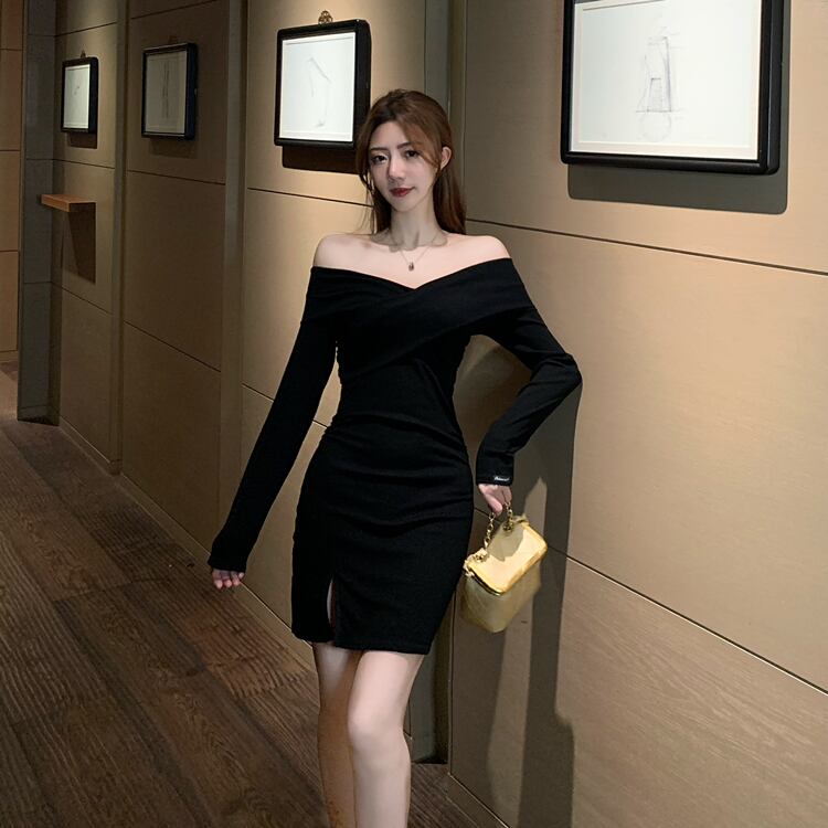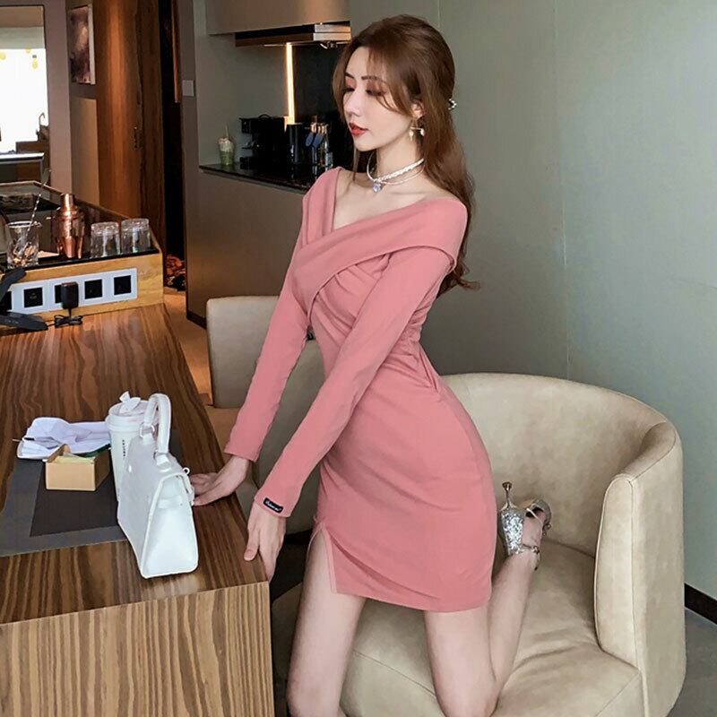 2021年秋新しい女性のタイドネットレッドアンカーセクシークロスVネック長袖スリムバッグヒップオフショルダードレス micat39599517059