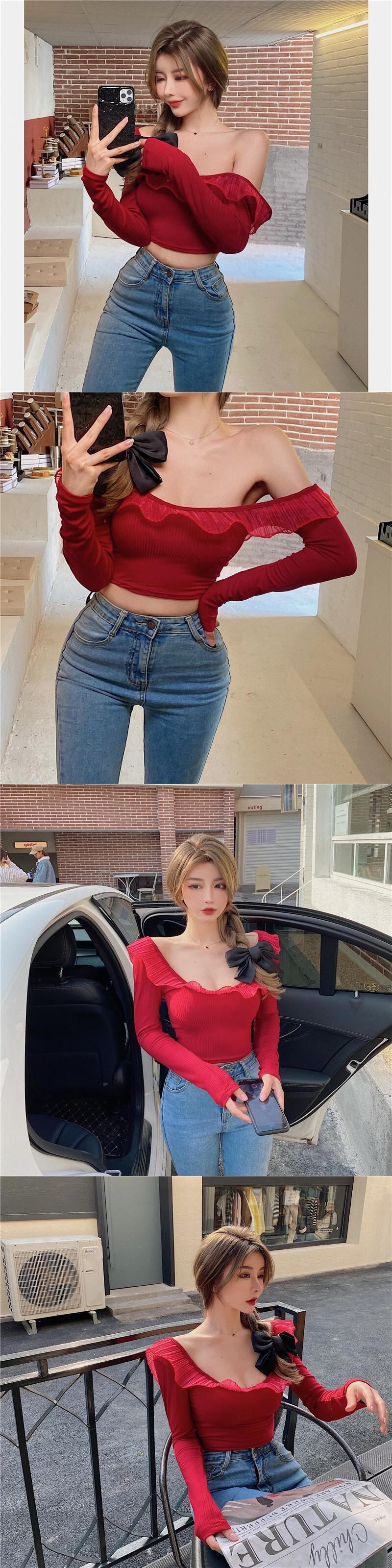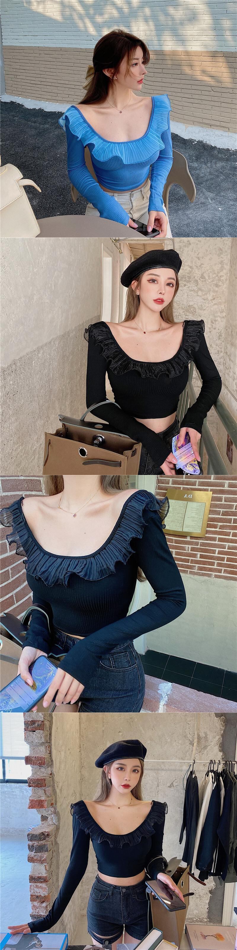 センスニッチミルクスウィートトップ初秋新女スーパーフェアリーフレンチフリルセクシーローカットTシャツ micat24415246234