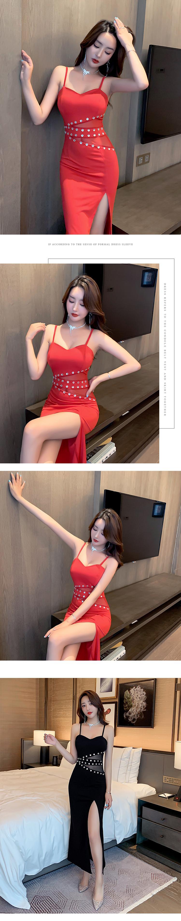 イブニングドレス、ロングスカート、ナイトクラブ、セクシーなVネックメッシュステッチのロングチューブトップストラップドレス micat24906372843