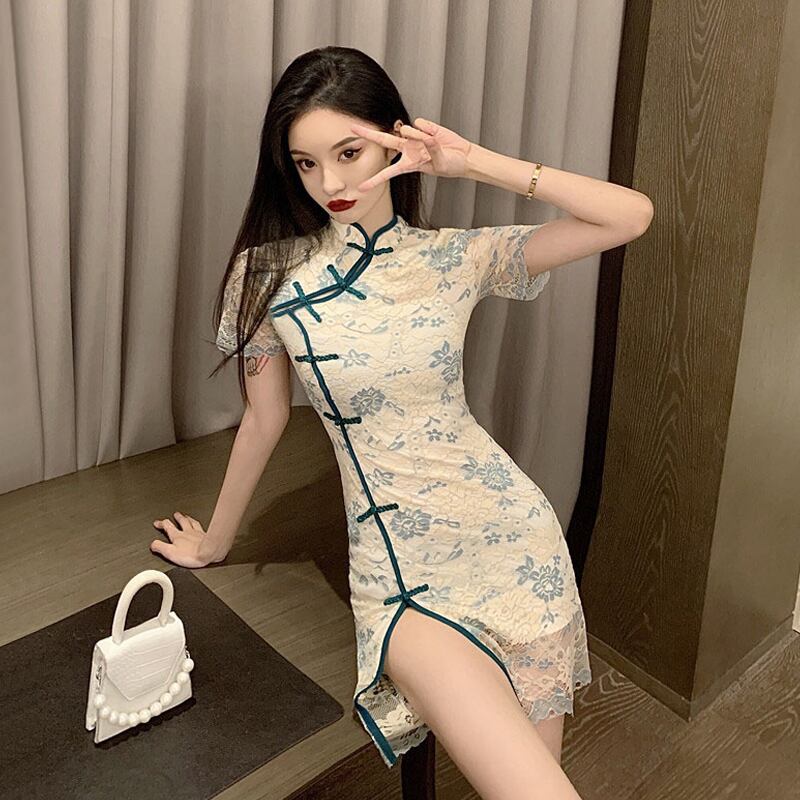 今年人気のチャイナドレススカート改良版ヤングナショナルタイドショートセクシーぴったりフィットスプリットレースワンピース micat22581103350