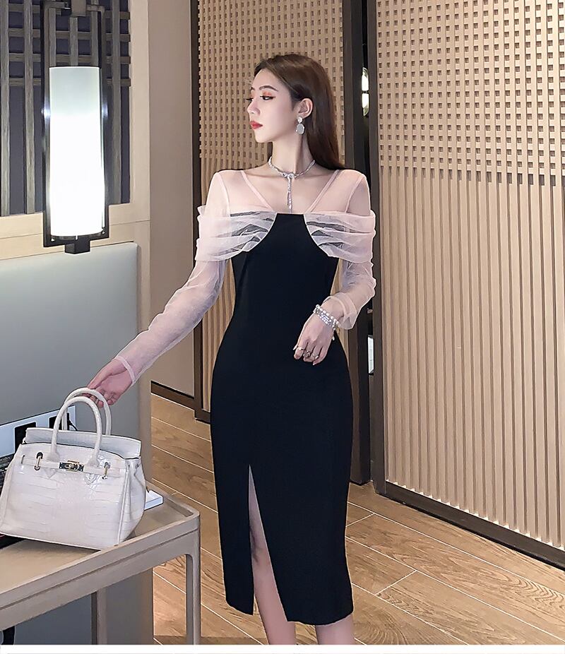 フランスのイブニングドレス、ナイトクラブ、女性のイブニングバンケット、西洋の気質、セクシーなワンショルダースリムフィットミドル丈ドレス micat29354811133