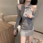 ネットセレブアンカーコスチューム女性ポジェニック秋ニットツーピースセクシーハンギングネック改良チョンサムドレススーツ micat41622773342