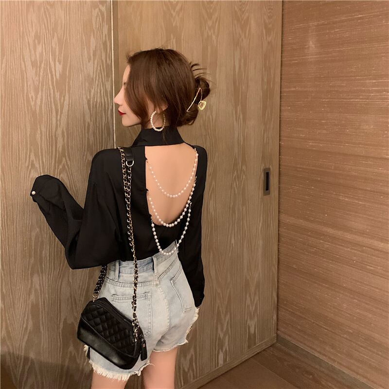 白いシャツの女性のデザインセンスニッチ初秋新気質の女神ファンセクシーな中空ホルターミッドレングストップ micat64928960835