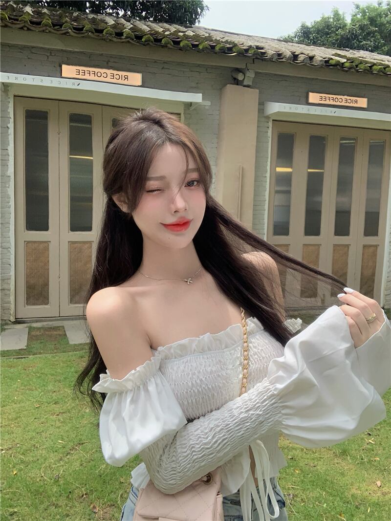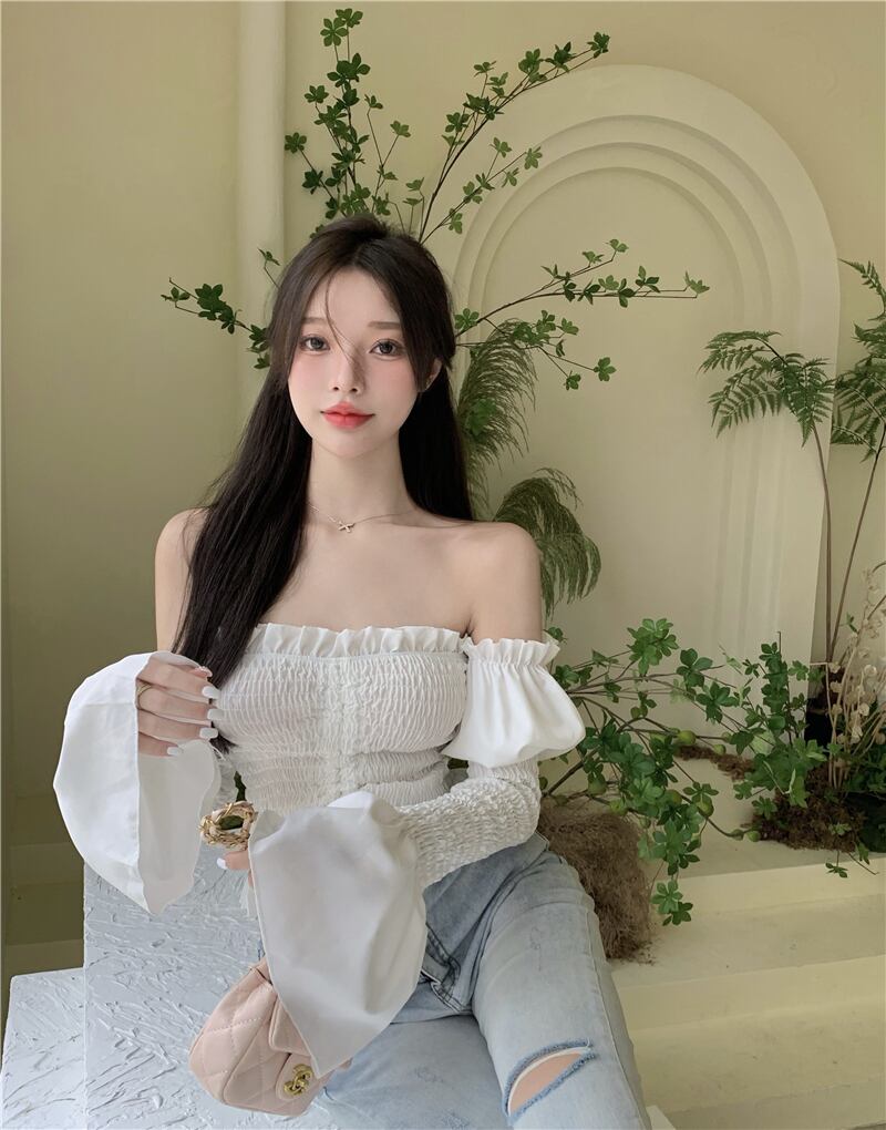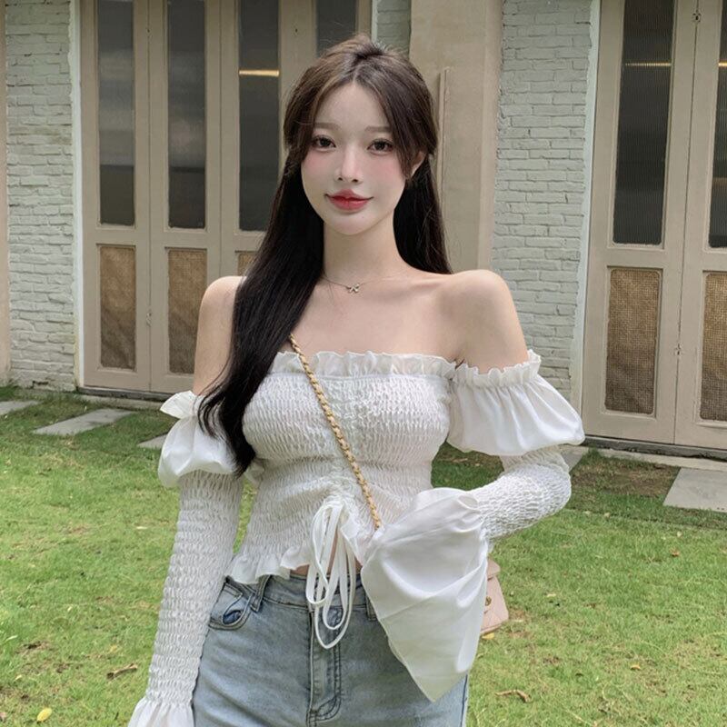 ライブ服女性アンカーポジェニック秋スーパーフェアリーフレンチホルンセクシーなワンネックオフショルダートップベビーシャツ micat13564603269