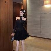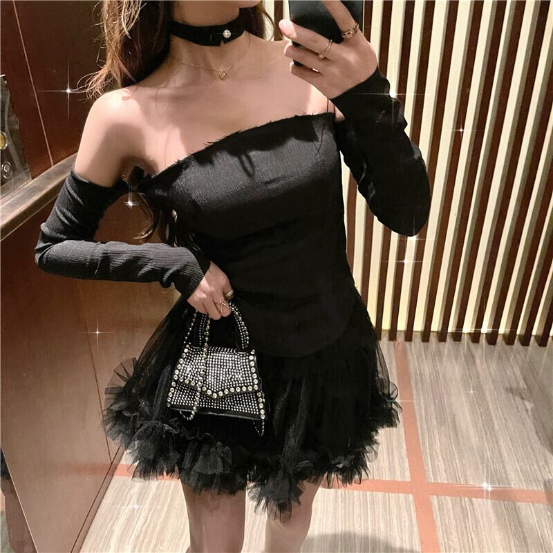 初秋新作レディースソルトシリーズフライドストリートスーツセクシーワンラインカラートップネットガーゼふくらんでいるハーフレングススカートツーピーススーツ micat10653182974