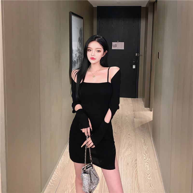 初秋のスーツ2021新しい長袖ショール+ツーピースのセクシーなスリングドレス micat52784963526