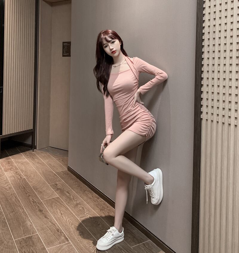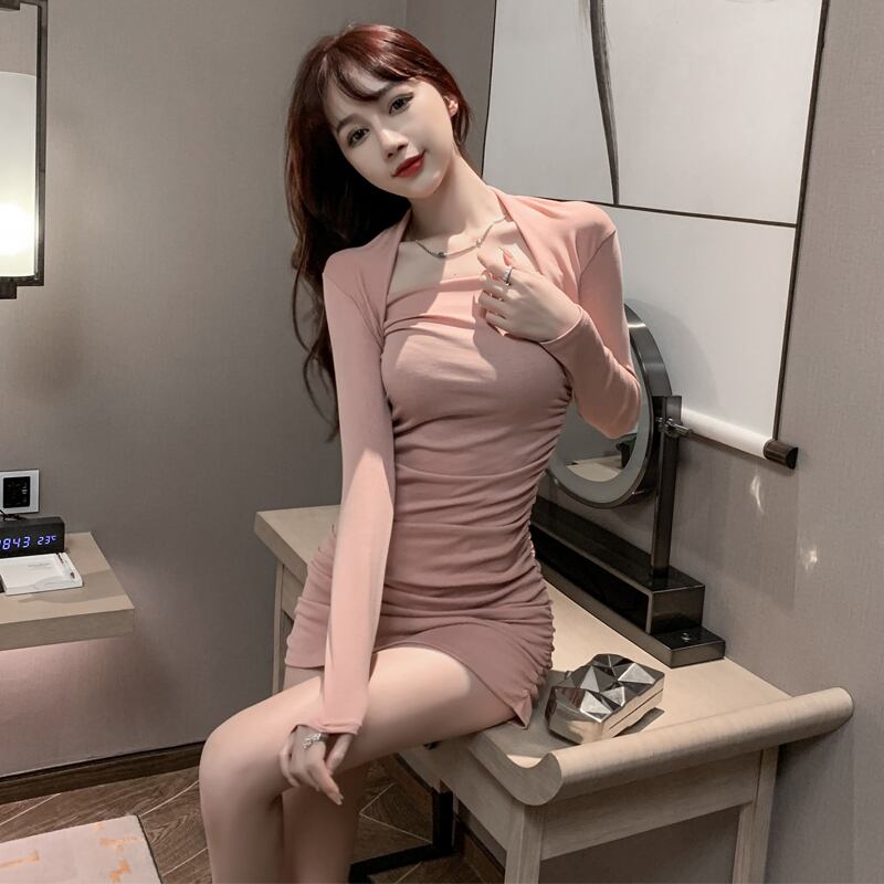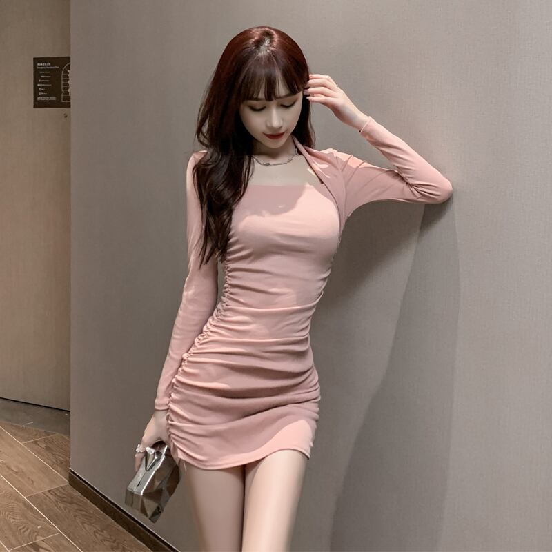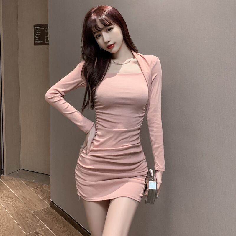 秋の新しい女性インターネット有名人アンカー気質セクシーなスクエアカラースリムフィットフォールド薄いバッグヒップボトミングドレス micat13591314057