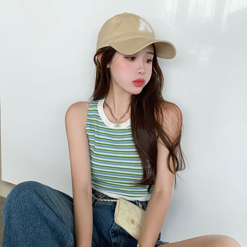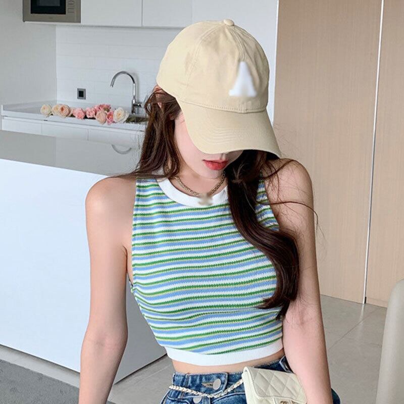 ベスト女性の夏のアウターウェア薄いニットの純粋な欲望ワイルドでセクシーな半ノースリーブのストライプのトップス、へそが露出 micat34710097581
