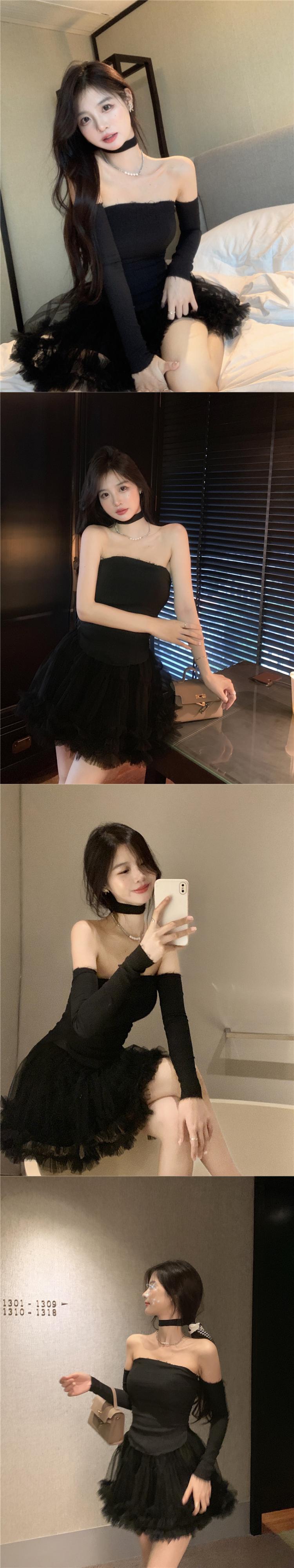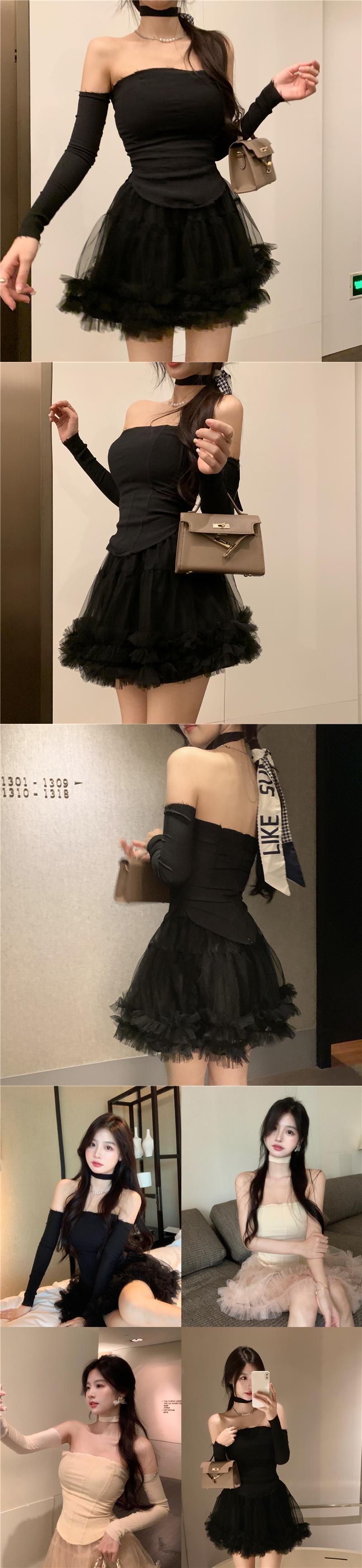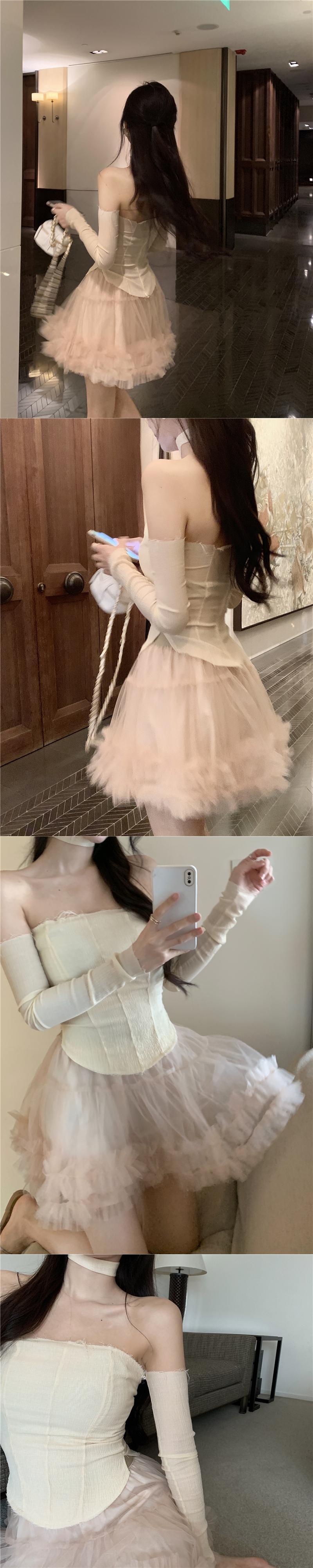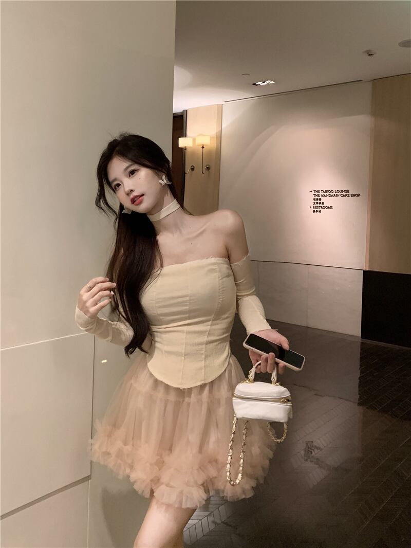 初秋のフライドストリートスーツフェミニンなワンネック長袖オフショルダートップス+スーパーフェアリーネットガーゼふくらんでいるスカート micat58380790366