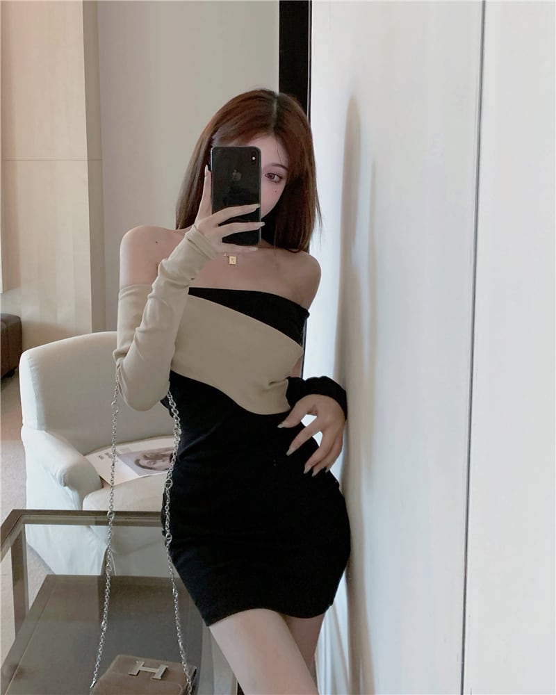 ネットセレブアンカーコスチューム女性ポジェニック秋セクシーワンショルダーマルチウェア長袖スリムヒップドレス micat55387296714
