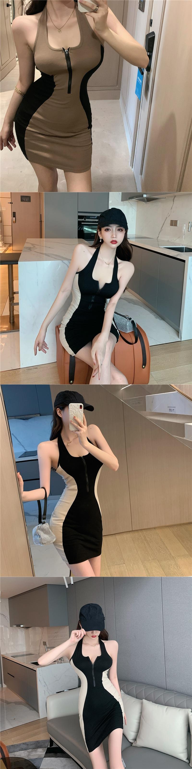 ライブ服女性アンカー服ファッションカラーマッチングセクシーな背中の開いたタイトフィットヒップノースリーブホルタードレス micat19419579455