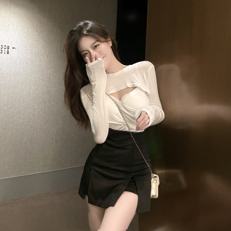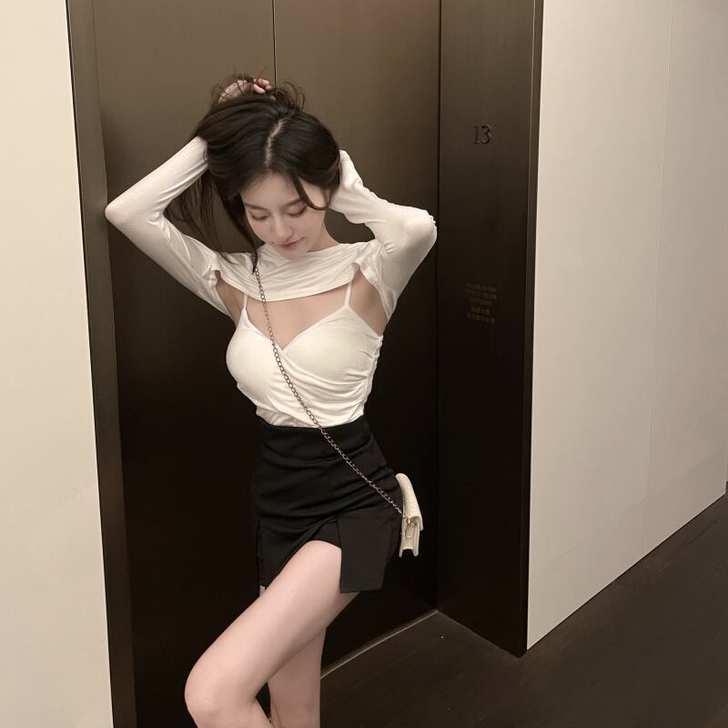 初秋のトップスデザインニッチ長袖ショールトップスTシャツ+セクシーキャミソールツーピーススーツ micat39649156714
