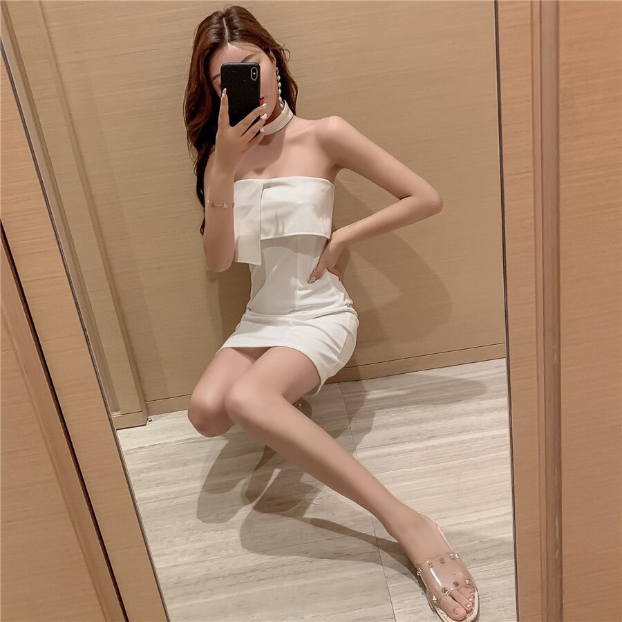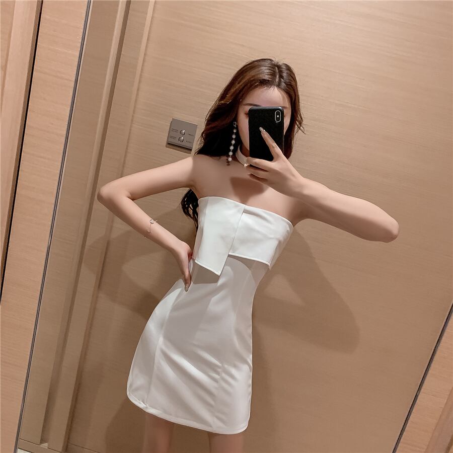小さなドレスの女性のシンプルで寛大な気質の女神ファンのウエストは薄くてセクシーなワンショルダーハンギングネックチューブトップドレスでした micat49561784651