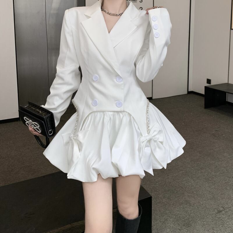 色:黒いスーツ,白いスーツ,黒スカート,白いスカート