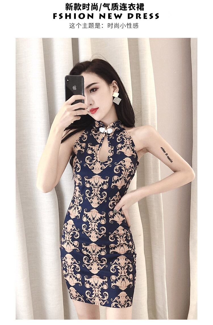 アンカーライブ放送服セクシーな吊り首漏れ肩気質レトロカラー若い修正チャイナドレス micat18633958252