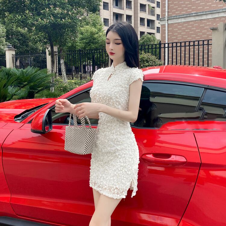 非常に妖精の夏のドレス2021新しい若い超妖精の三次元花柄フレンチ改良チャイナドレス micat76037584515