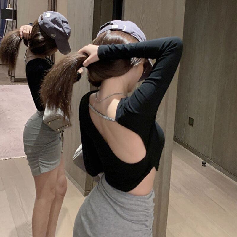 初秋の新しい女性の2021ジャンプディデザインセンスニッチセクシーな不規則な中空ホルター長袖トップTシャツ micat80703125383