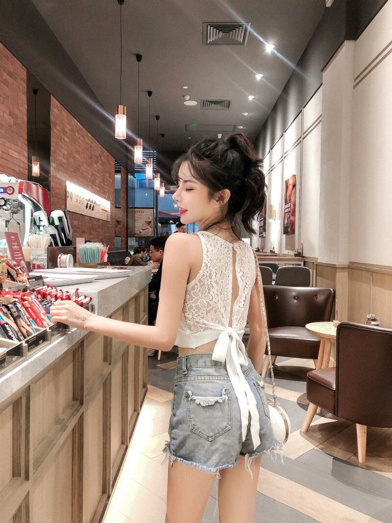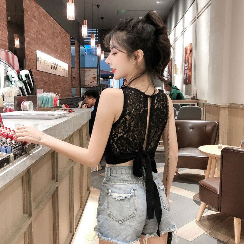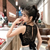 美しいベストの女性のアウターウェアセクシーなレースステッチホルターストラップへそが露出した半袖レスセータートップ micat75290113659