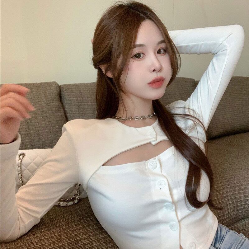 初秋のトップデザインニッチシックな服2021新しいフェミニンな中空ショートフェイクツーピースTシャツ micat19105860277