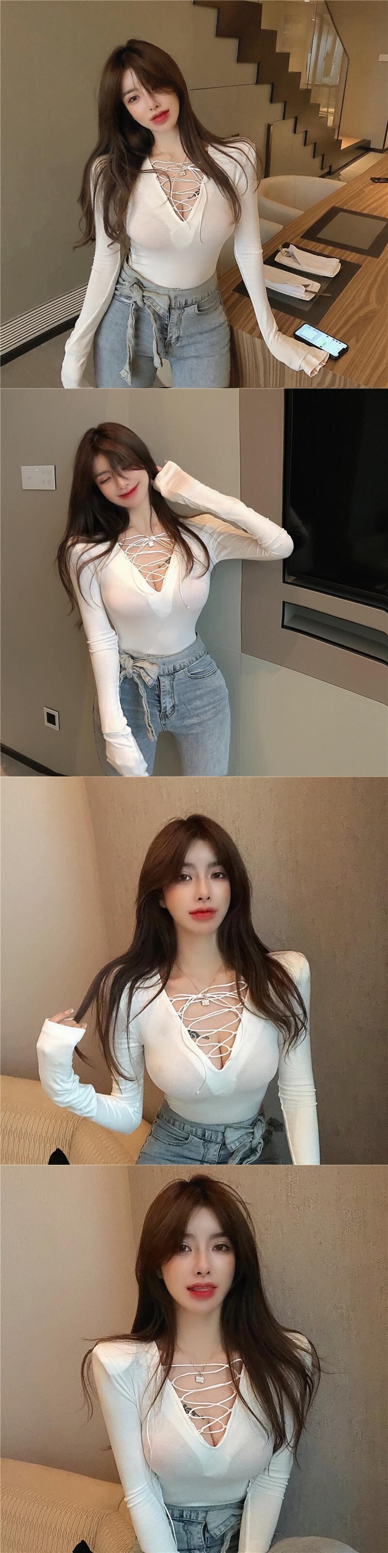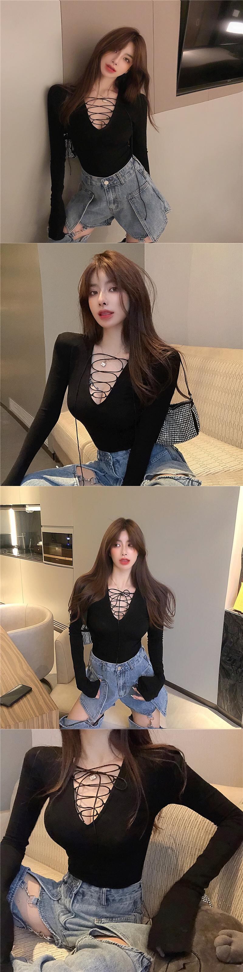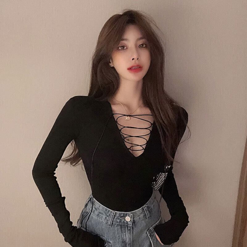 バージャンパー服女性初秋アンカーライブナイトセクシークロスストラップローカットディープVネックトップTシャツ micat18966621154