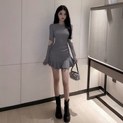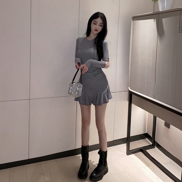 初秋の新しい女性の2021年のファッション気質セクシーな長袖ショートバッグヒップチェック柄フィッシュテールドレス micat3813750077