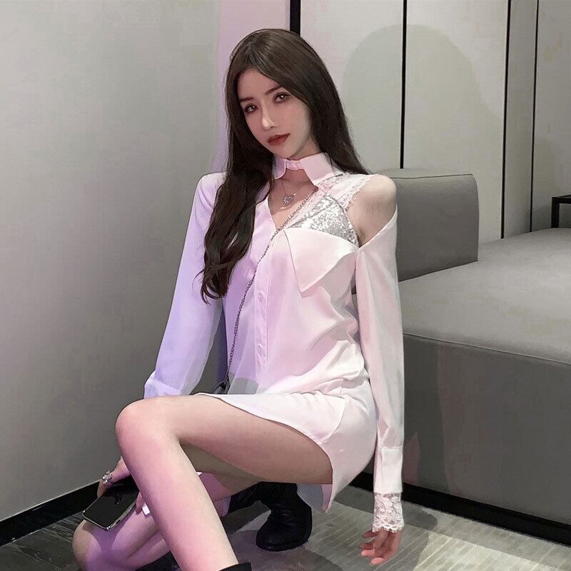 バージャンパーレディース初秋の服スパークリングスパンコールレースステッチセクシーなストラップレスミドル丈シャツトップ micat86096385215