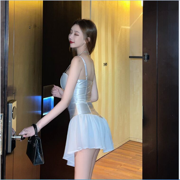 イブニングバンケット気質スモールドレスショートナイトクラブバージャンパーレディースふわふわセクシーチューブトップストラップドレス micat70071457770