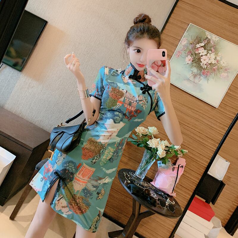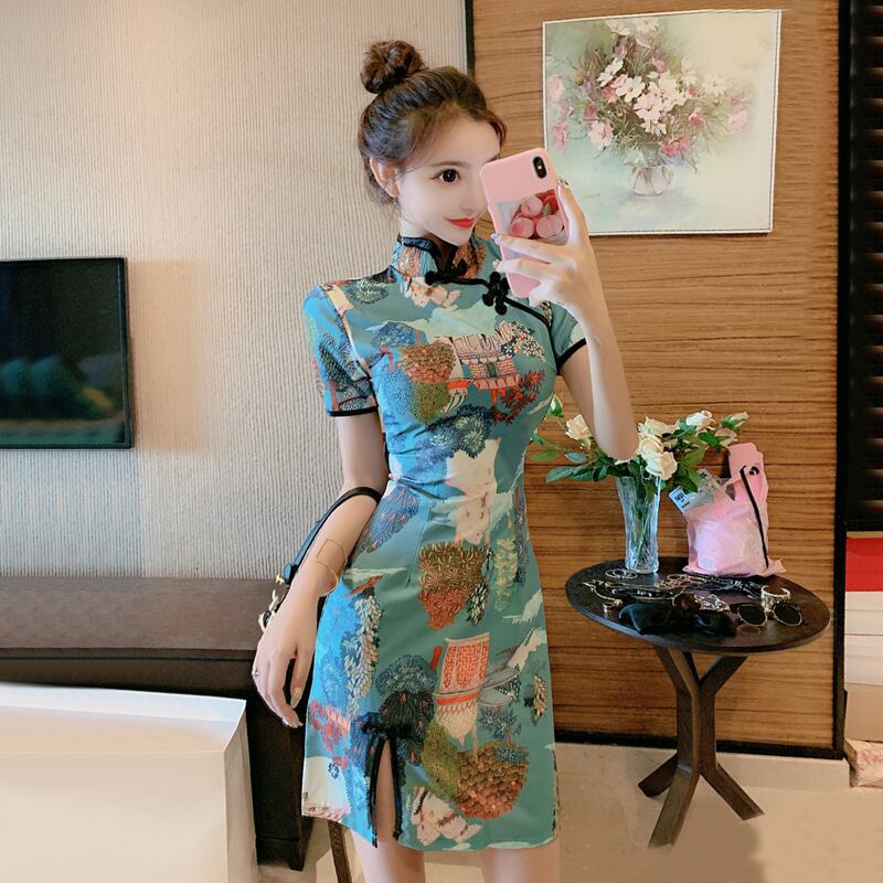 デイリーチャイナドレス改良版ドレス2021新夏気質レトロディスクボタン半袖共和党風スモールドレス micat93330349869