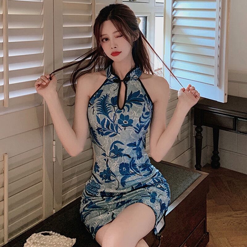 ライブ服女性アンカーコスチュームポジェニックレトロチャイナスタイルセクシーな背中の開いたホルターネック改良チャイナドレス micat4255631185
