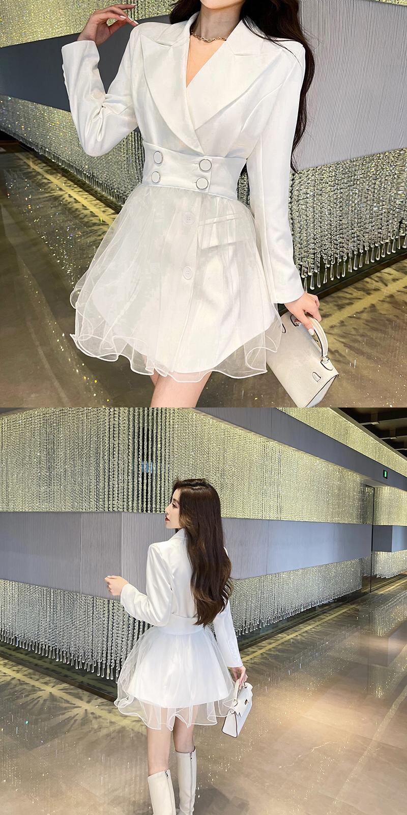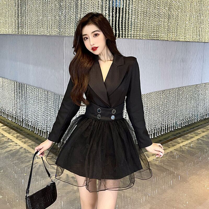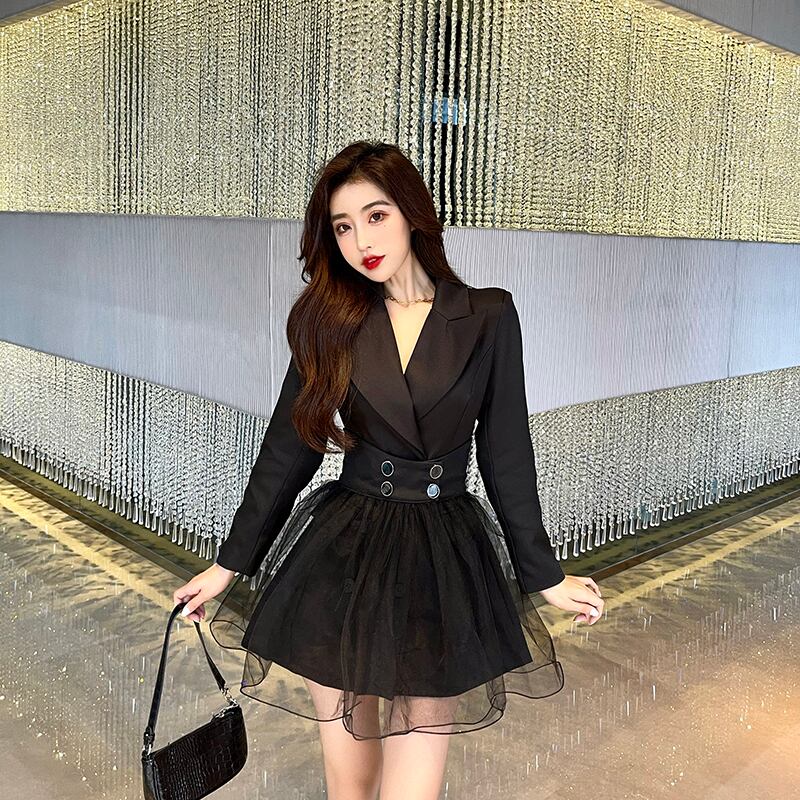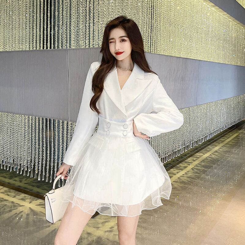 初秋スーツ女性ハイコールドゆうじえスタイルスーツ襟スーツドレス+オーガンザふくらんでいるスカートツーピーススーツ micat50235135005