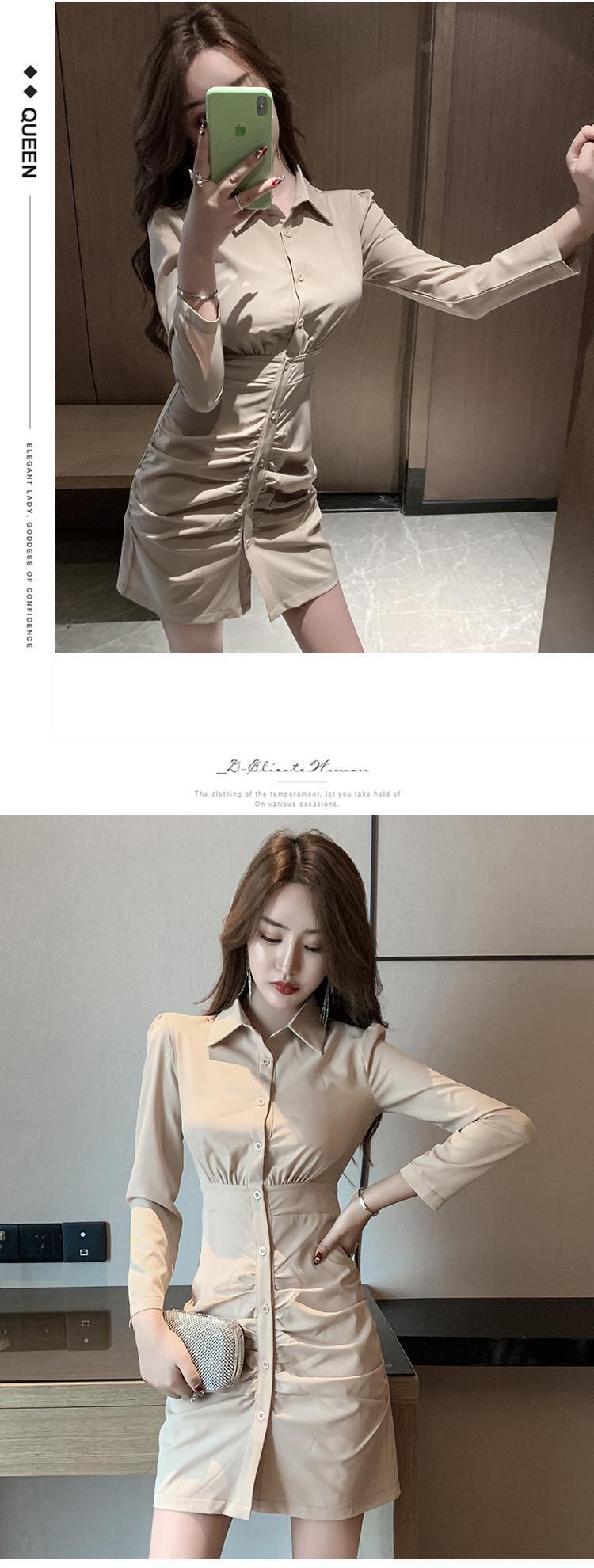 西洋気質の女神ファンチョンロングシャツスカート秋の服2021新しい女性のウエストウエストスリムバッグヒップドレス micat2281314534